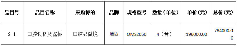 2025年口腔医疗设备(第一批)采购项目中标公告